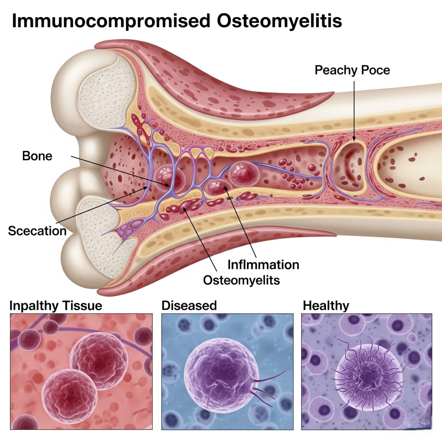 Immunocompromised Osteomyelitis एक गंभीर संक्रमण है, जो उन लोगों में होता है जिनकी प्रतिरक्षा प्रणाली कमजोर होती है। इस स्थिति में हड्डी में बैक्टीरिया या फंगस (कवक) द्वारा संक्रमण फैल जाता है, जिससे गंभीर दर्द, सूजन और हड्डी की क्षति हो सकती है।